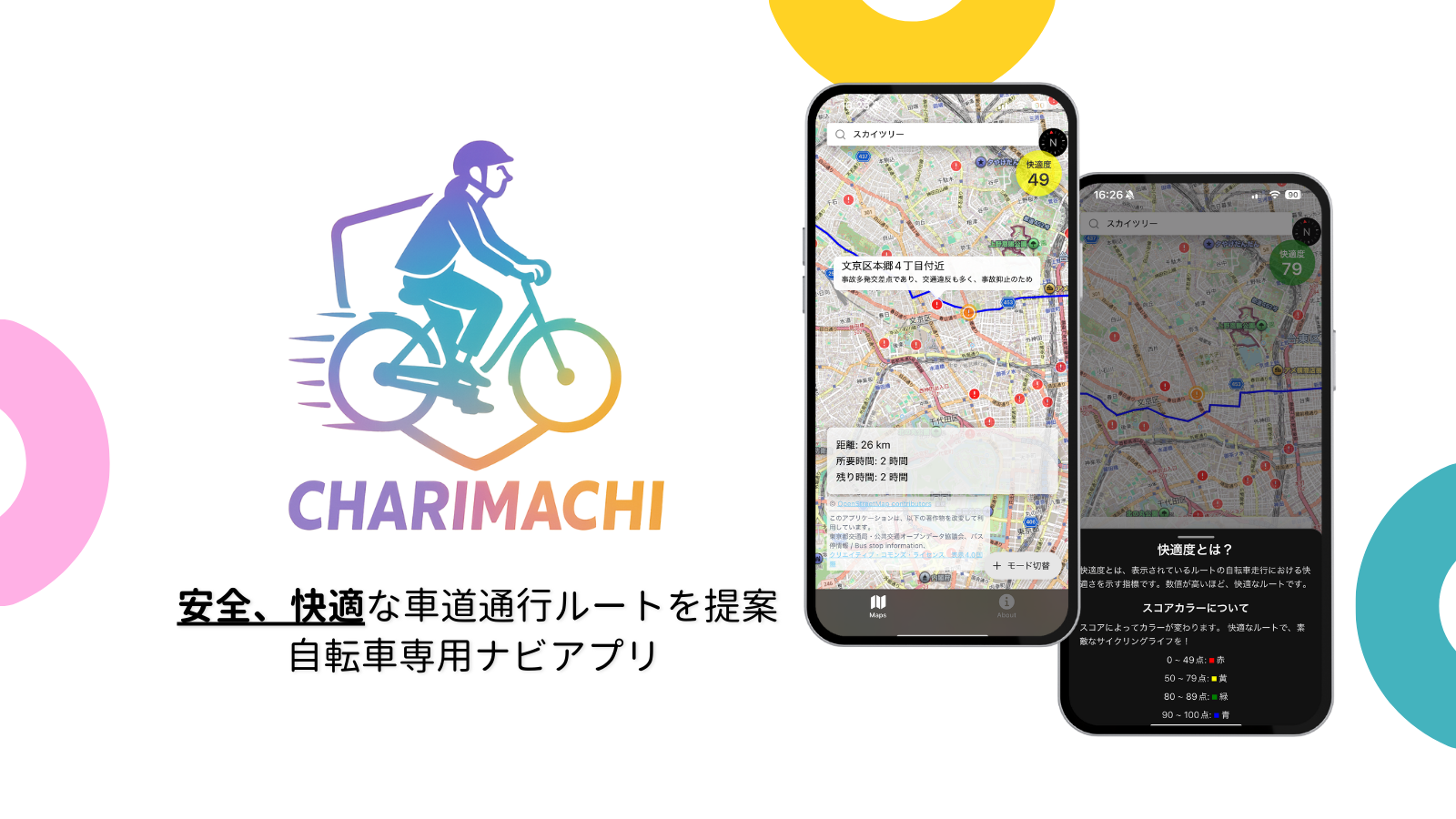 2025年度の「都知事杯 Open Data Hackathon」で開発した、警視庁などが公開しているオープンデータを活用して自転車利用者が安心して車道を走行できるよう支援するスマホ用ナビゲーションアプリです。